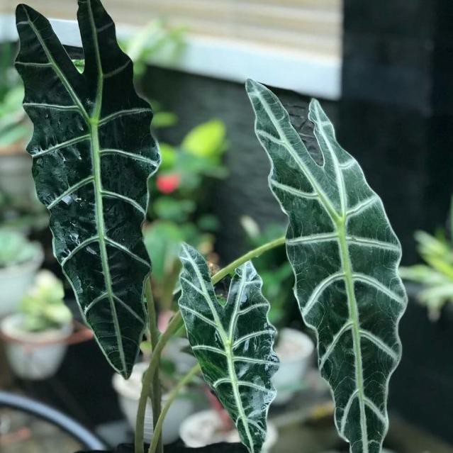 Jenis alocasia yang warna daunnya sangat eskotis sebab bewarna silver.